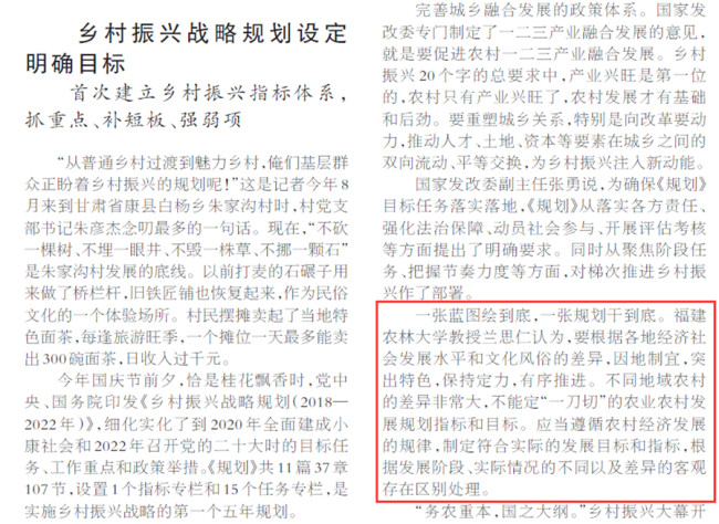 10月20日《人民日报》头版刊登《让亿万农民拥有实实在在的获得感、幸福感、安全感——喜看乡村振兴这一年》,报道我校兰思仁校长针对乡村振兴规划提出专家解读,文章如下: