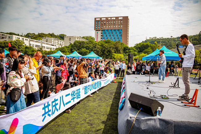 10月20日,为庆祝建校82周年,“敢FUN敢青春”2018年秋季体育节之趣味运动会暨草地音乐汇在桃山田径场举行。全校1000多名师生欢聚一堂,用欢声与笑语祝愿学校82岁生日快乐。