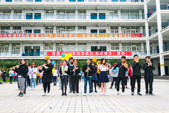 此外,10月19日,校大学生艺术团还在创新楼前快闪,唱校歌,器乐合奏生日快乐,为建校82周年献上最美的祝愿。