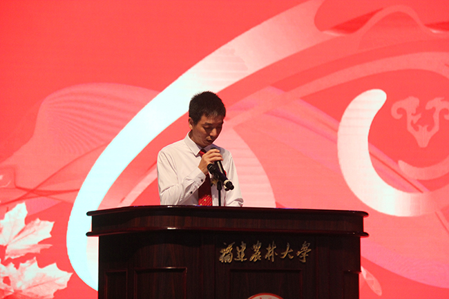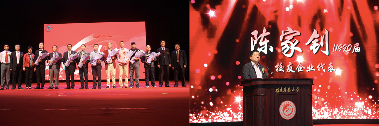 校友是学院最宝贵的财富,也是学院温暖的情感所系。大会邀请部分校友企业代表上台,接受学生代表献花。1990届校友陈家钊作为校友企业代表陈上台致辞,感谢学院全体老师的教育、培养,并表示未来的畜牧业是结合了乡村振兴、产业振兴、生态环保、生物安全等几个方面协调发展,希望同学们能够抓住机遇,有所成就。福建省农业厅党组成员、总畜牧兽医师、1986届校友梁全顺和福建省农业科学院畜牧兽医所、1999届(硕士)校友周伦江分别致辞,对学院的培养表示感谢,对学院的60华诞表示祝贺,并祝愿学院的事业蓬勃发展,蒸蒸日上,再创佳绩。2015级本科生吴迪同学代表全体在校生结合自身经历感恩学院,送上祝福,并希望努力成为有理想有本领有担当的现代新青年,在实现中国梦的生动实践中书写人生华章。