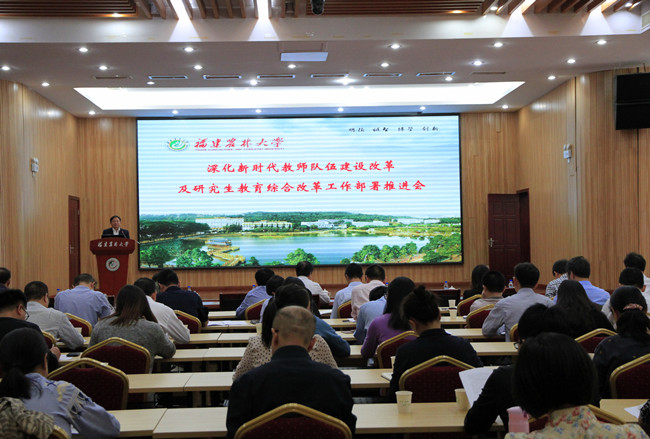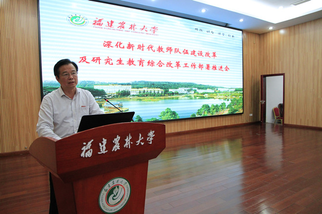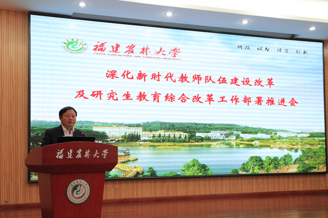 兰思仁校长指出,建设高素质创新型教师队伍,着力提高人才培养质量是学校加快推进“双一流”建设的使命担当,推进教师队伍建设和研究生教育改革已成为学校当前的两大重点工作。他要求,全校各单位要以高度的政治责任感和历史使命感落实好两项重点改革任务,不断坚定“四个自信”,牢固树立“四个意识”,践行“两个服从”,切实提高政治站位,凝聚共识,抢抓机遇、开拓进取,全力提升教师队伍建设水平和研究生教育质量,扎实推进学校“双一流”高水平大学建设,为建设新福建、为办人民满意农林高等教育做出新的贡献!