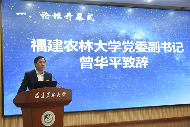 曾华平代表学校向论坛的召开表示祝贺,向与会嘉宾的到来表示欢迎。他简要介绍了我校的基本情况。他指出,我校有着优良的党建与思想政治工作传统,学校坚持立德树人根本任务,扎根八闽大地办教育,着力培养德智体美劳全面发展的社会主义建设者和接班人。广大宣传思想工作者扎实推进中国特色社会主义思想特别是习近平新时代中国特色社会主义思想进校园、进课堂、进头脑,深入推进社会主义核心价值观和中国梦宣传教育。在推进思想理论武装、致力传播能力建设、把握正确舆论导向,统一思想、凝聚力量等方面取得了显著的成效、做出了积极的贡献。他表示,新时代高校宣传思想战线责任重大、使命光荣。本次年会的胜利召开,既为全国农林水高校宣传思想工作者搭建了学习交流平台,也为我校提供了很好的学习交流机会。他希望,各位来宾专家一如既往的关心支持我校发展,对我校工作多提宝贵建议。