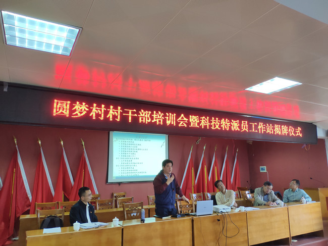 圆梦村总干事、原副省长李川出席培训会并为圆梦村科技特派员工作站揭牌,并进行“关于圆梦村建设发展和科技特派工作机制创新”宣讲,希望科技特派员工作站能够整合资源,帮助圆梦村实现乡村振兴,以此形成一套“圆梦村”乡村振兴的机制,进行推广宣传。