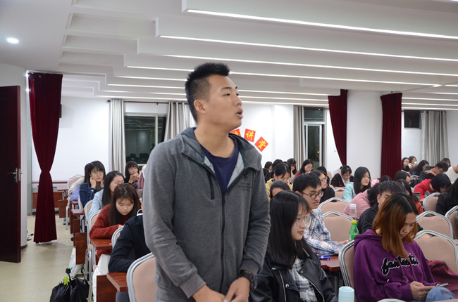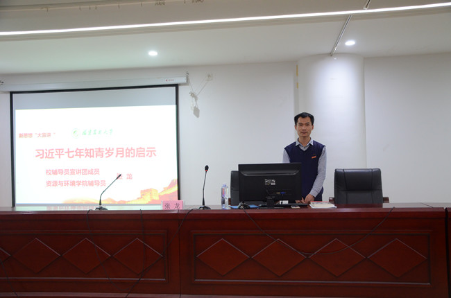 张龙老师围绕《习近平的七年知青岁月》一书,生动再现了青年习近平在梁家河七年的艰苦生活和成长历程,引导广大团员青年深刻学习习总书记不怕苦、肯吃苦的奋斗精神。他引用习总书记在北京大学考察时的“第一粒扣子”之喻,告诫在座同学“功崇惟智,业广惟勤”,牢固树立理想信念,在精神上充实自己。同时,他强调团学青年们要下苦功夫求真求学问,调整好自己的心态,把学习作为首要任务,努力求学求真知。在总结发言中,蔡俊逸同学说道,“习总书记坚守初心、坚持学习、坚持奋斗和为民务实的作风深深感染着我,他是我们广大青年的学习楷模和榜样。”