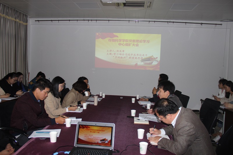 11月2日上午,作物科学学院党委在作物楼302会议室召开理论组学习扩大会。会议由学院党委书记童庆满主持,学院党政领导、党委委员、各党支部书记、组织委员、宣传委员出席会议。