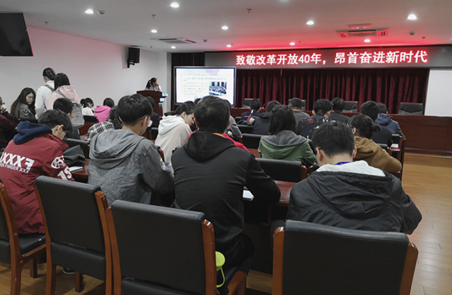 11月3日下午,由动物科学学院团委思想教育部承办的以“致敬改革开放四十年 昂首奋进新时代”为主题的青马班讲座在圣农动物科学楼7楼大会议室开讲。动物科学学院第九期青马班成员和部门成员到场参加。