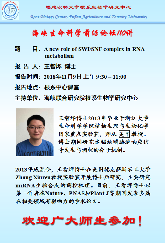 海峡生命科学前沿论坛110讲(2018.11.9)-A new role of SWI/SNF complex in RNA metabolism