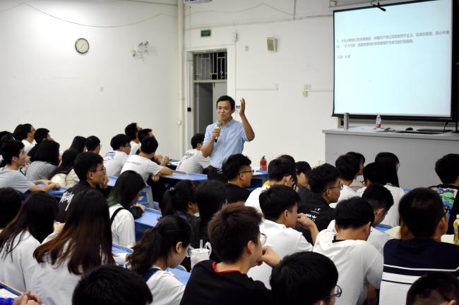 11月7日晚,机电工程学院在禧强楼107教室举办主题为“准确理解新时代我国社会主要矛盾的变化”的新思想宣讲会。宣讲会由辅导员理论宣讲团成员、南平校区团委副书记林锋主讲,机电工程学院团委副书记主持,学院2018级各专业班委190余人参加。