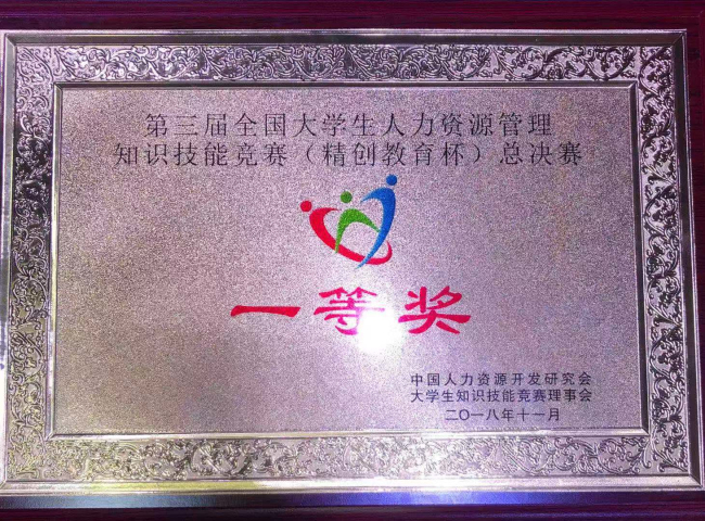 11月2-4日,第三届全国大学生人力资源管理知识技能竞赛(精创教育杯)总决赛暨高峰论坛在山东青年政治学院举行,经激烈角逐,我校管理学院学生代表队(2015级人力资源管理:陈子弘、曾祥祯、兰石英、郭小妹)获得第三届全国大学生人力资源管理知识技能竞赛(精创教育杯)总决赛一等奖和技能展示优胜奖,这是我校在此项比赛中取得的最好成绩。我校管理学院人力资源管理系许小晶、张紫琴老师被评为优秀指导老师。