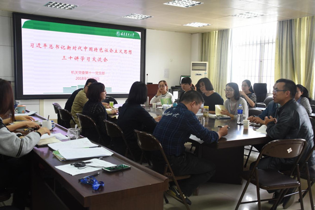 11月5日下午,机关党委第十一党支部在明德楼312开展了“习近平新时代中国特色社会主义思想三十讲”学习交流会,交流会由党支部副书记曾海滨主持。