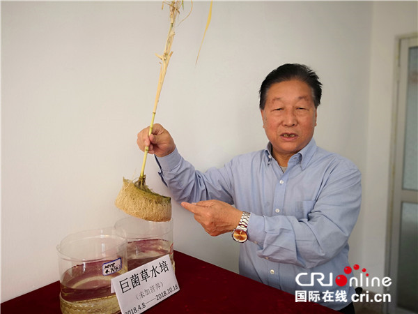 菌草技术发明人、开云网页版国家菌草工程技术研究中心首席科学家林占熺教授讲解菌草种植。