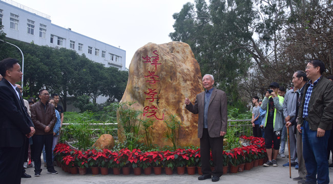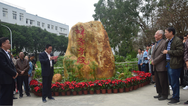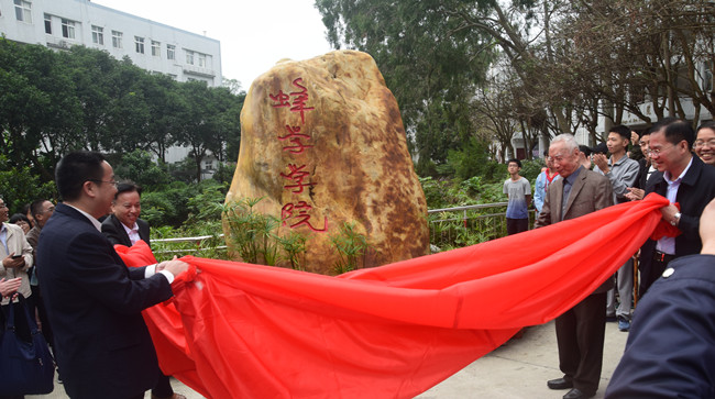 11月10日,蜂学学院举行院石落成揭幕仪式。副校长郑宝东、蜂学专业创始人龚一飞教授、原蜂学专业辅导员童建福及蜂学学院党委书记张开晃共同为院石落成揭幕,参加揭幕仪式的还有学院退休教师、现任教师代表、84级蜂学专业校友和在校生代表共100多人。