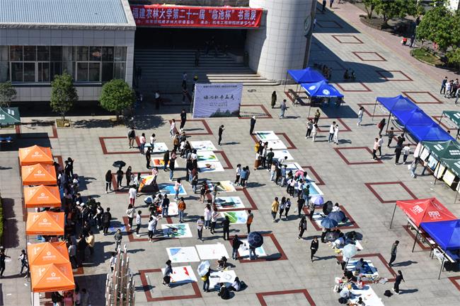 活动围绕现场绘画大赛、摄影作品大赛、“老中青农林眼中的改革开放”图片展、个人书画作品展、现场书法展示、“我与‘临池杯’”照片分享、主题绘、霓裳画八个项目展开。活动期间,来自全校各学院、各校级学生单位的书画爱好者积极参与其中,或挥毫泼墨、演绎丹青,或独自驻足欣赏、三五成群品评。横平竖直、布白均匀等书画技法,无不体现了同学们优秀的传统文化素养。此次活动,不仅吸引了大量学生参与观摩,外国友人也欣然前往现场参与,并留下作品留念,为书画展增添了一抹靓丽的色彩。