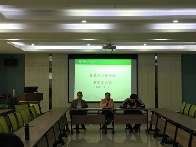 11月15日下午,资源与环境学院于田家炳611召开教职工大会。会议由学院党委副书记(主持工作)陈月霄主持召开。