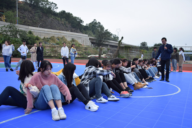 活动以小组为单位开展,设置了多项生动有趣的团队游戏。活动伊始,同学们热情高涨,每组选出一个领队带领本组同学进行各项“挑战”。在林锋老师的指导下,同学们完成了团队单腿跳、众人坐凳子等游戏。各小组通过不断地尝试、调整与磨合,同学们对彼此之间有了更多的了解与默契,也明白了团队合作的重要性,同时游戏的新颖性也让同学们兴趣盎然。最后,几位同学代表分享了自己在这次活动中的体会,纷纷表示获益良多,历时三个小时素质拓展活动在同学们的阵阵掌声中结束。