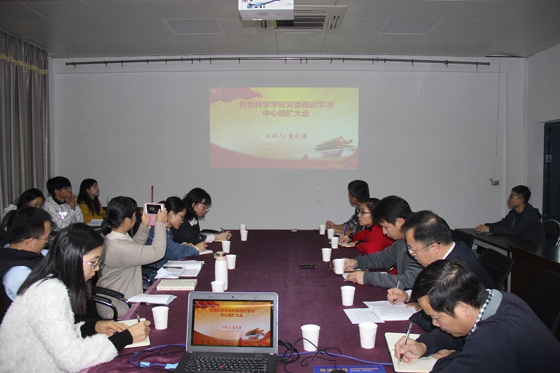 11月16日下午,作物科学学院党委在作物楼302会议室召开理论中心组学习扩大会。会议由院党委书记童庆满主持,学院党委委员、各党支部书记和支委参加了会议。