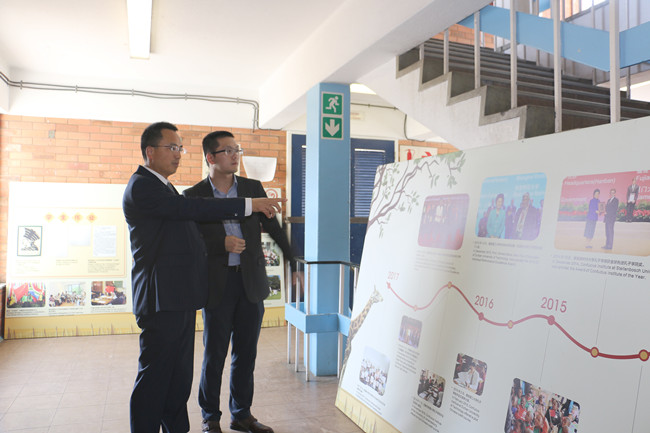 费明星总领事在德班孔院中方院长吴林的陪同下,走进德班孔院中国文化体验中心,了解了南非孔院以及德班孔院的发展历史、中国文化推广及汉语教学传播成果等,对孔院自成立以来所取得的成就表示了充分肯定,同时也对德班孔院发展农业特色型孔子学院和职业技能培训基地的工作提出了自己的建议与看法,希望德班孔院能充分利用开云网页版特色优势学科资源,将农业、林业、国家菌草技术等与德班当地实际情况相结合,合作创新,推动德班孔院的特色发展。