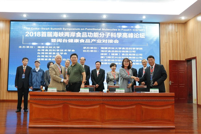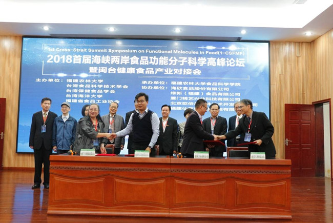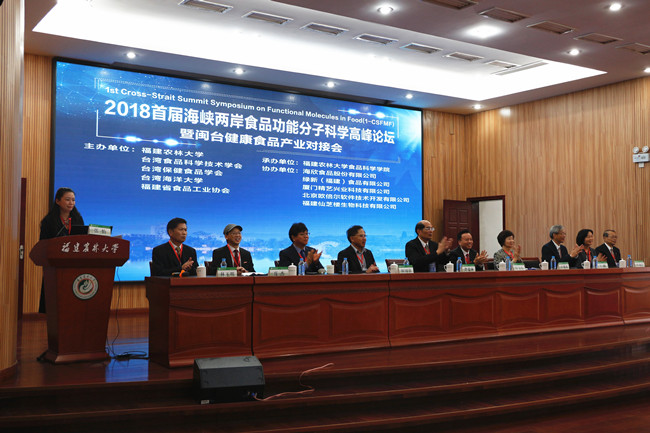 11月18日,首届“海峡两岸食品功能分子科学高峰论坛”暨闽台健康食品产业对接会在我校召开。本次大会由我校和台湾海洋大学发起,由我校、台湾食品科学技术学会、台湾保健食品学会、台湾海洋大学及福建省食品工业协会主办,我校食品科学学院承办。来自台湾海洋大学、台湾大学、中兴大学、宜兰大学、台湾食品工业发展研究所、台湾保健食品学会等9所高校和单位的26学者专家及台湾知名企业的13位代表参会。大会还邀请了广东省微生物研究所所长吴清平院士,华南理工大学、上海交通大学、南昌大学等大学教授与我校21位专家代表齐聚一堂,对食品功能分子科学的创新发展进行深入研讨,推动海峡两岸食品功能分子科学相关科研领域的发展。