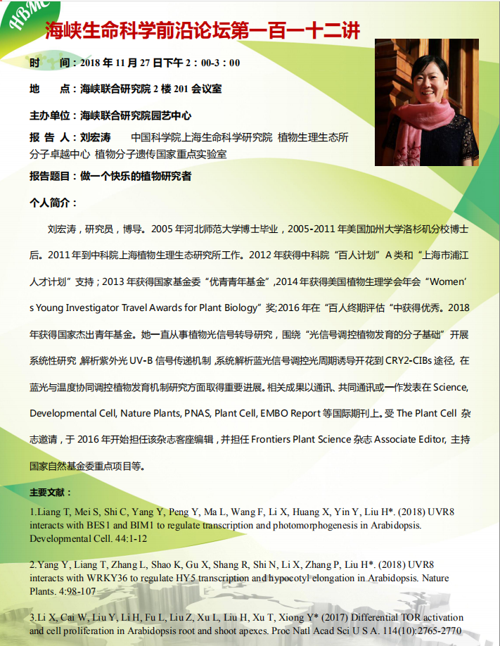 海峡生命科学前沿论坛第一百一十二讲(2018.11.27)-做一个快乐的植物研究者