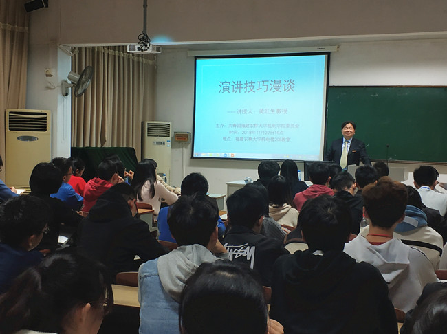为提升学院学生的人文综合素质,强化沟通解说技巧,年11月22日晚上,机电工程学院邀请黄旺生教授做“演讲技巧漫谈”专题讲座,学院团委副书记叶善斌、辅导员林燕钰及近100名学生参加讲座。
