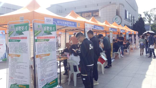 11月24日下午,第二届“人才·南平校园行”高校毕业生专场招聘会在我校拓荒广场举行。本届招聘会由南平市委组织部、南平市人社局和校学生处共同主办。南平市委组织部副部长林勇、南平市人社局副局长马春以及学生处负责人到场指导。