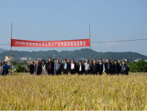 福建全程机械化再生稻再生季产量再创新高!11月26日下午,在福建省南平市建阳区水吉镇的示范稻田里,测产专家组组长、中国农科院赵明教授宣布,通过在百亩核心示范方随机抽取了3个有代表性的示范田块,经机收脱粒、称重、测定稻谷杂质及含水率,按含水率14.0%的标准计算折干率,示范片再生稻再生季平均亩产达470.4公斤,比传统裁培法增产49.01%,居国内领先水平。
