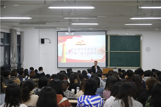 活动期间,艺术设计系党总支书记陈洪华介绍了本次学习的目的和意义,并组织大家观看视频节目《平“语”近人——一枝一叶总关情》。该节目由“原声微视频”“思想解读”“经典释义”“现场访谈”“互动问答”“经典诵读”六个环节构成,各个环节丝丝入扣,形式多样,不仅很好地带动观众的兴趣,也呈现了习近平总书记的用典之妙。