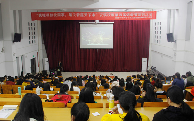 11月26日晚,安溪校区第三届校园记者风采大赛决赛于校区创新报告厅举行。安溪校区·安溪茶学院团委书记王刚,辅导员叶行、陈辉荣、郑江枫、康学梅、谭勇、王鸿蕾、张雅珊以及多位团学干部担任此次大赛评委、嘉宾。现场更有选手亲友团助威和学生观众约三百人观赛。