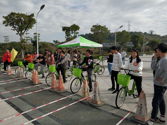 11月24日,“旗行骑行,漫绿慢骑”——旗山校区首届“小绿”公益自行车慢骑比赛在旗山校区东门广场拉开序幕。比赛吸引了200余名同学观赛。