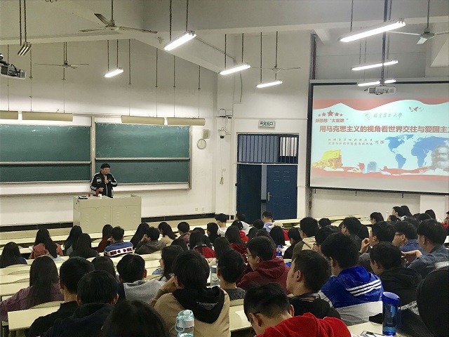 刘强老师通过对国际关系现状、我国大国外交策略及其中所透视的马克思主义理论最新中国化成果以及新时代爱国主义不同形态的表现等,号召广大青年学生增强政治定力、筑牢理想根基、强化使命担当、提升本领能力。