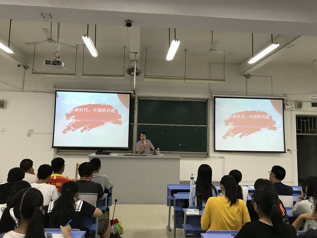 宣讲活动期间,校辅导员理论宣讲团成员叶威先、林锋、王彬彬、张龙、刘强5位老师分别作了 “如何认识新时代:中国的兴起”、“ 准确理解新时代我国社会的主要矛盾”、“ 深入学习习近平新时代中国特色社会主义思想”、“ 习近平七年知青岁月的启示”、“ 用马克思主义的视角看世界交往与爱国主义”为主题的新思想“大宣讲”。
