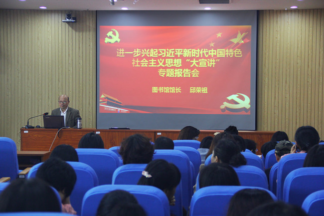 11月29日下午,图书馆党委在逸夫图书馆视听阅览室举办题为《学习新思想,助力国家生态文明试验区(福建)建设》的专题宣讲会,由图书馆馆长邱荣祖主讲,图书馆、信息中心全体教职工130人参加。