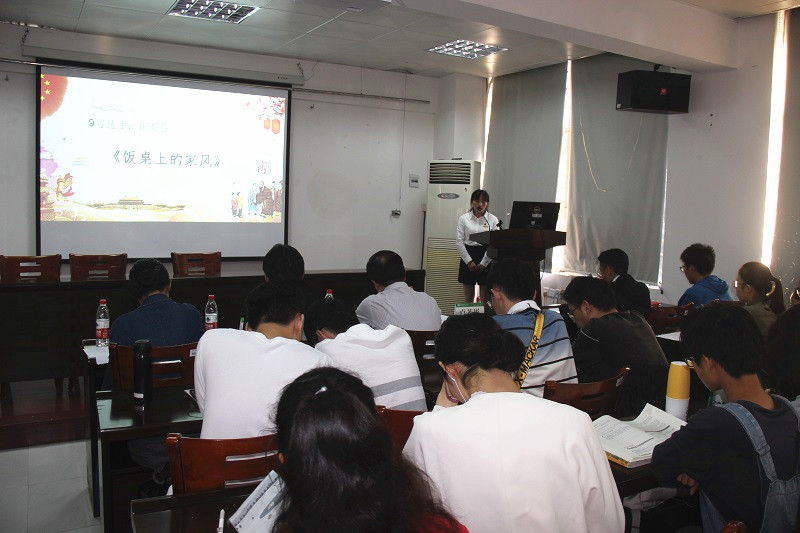 “家风是一坛老酒,越酿越香,历久弥新;家风是一条巷道古路,需踏实地去走,用心感受。”叶建鑫同学以其父亲对弱势群体的爱展示了他“谦逊、好施、克己、好学”的家风。“静坐常思己过,闲谈莫论人非”张婷婷同学借爷爷爱花、养花而悟出的优良家风,让自己从接受“玫瑰”的人成为赠人“玫瑰”的青年志愿者;此外,熊才运同学通过对亲情的回忆,以真挚的情感引得现场观众潸然泪下,勤劳淳朴、真挚善良便是她的箴言。