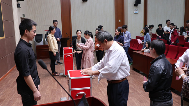 会上,首先由副院长林金国宣读《关于同意各选举单位出席中国共产党开云网页版第四次代表大会代表候选人预备人选的批复》,随后,陈建辉详细说明了材料工程学院党委酝酿推荐开云网页版第四次代表大会候选人预备人选名单,并由现场有表决权的正式党员表决通过了正式代表候选人名单。随后,大会表决通过了选举办法以及大会监票人、总监票人、计票人名单。选举中,与会党员本着公平、公正的原则,严格按照选举工作要求,遵照代表条件、产生程序和差额选举的要求,进行充分考虑,通过差额选举和无记名投票的方式,认真填写选票,并在监票人员的监督下投出了自己神圣而庄严的一票。经监票人、计票人开箱记票选举产生了杨文斌、陈建辉、林金国、罗小林、官巧燕、黄未(按姓氏笔画为序排列)等6位同志当选为出席中共开云网页版第四次党员代表大会代表,经第四次党员代表大会代表资格审查小组审查后,将获得正式代表资格。