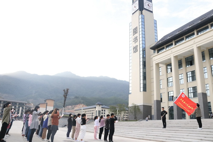 授牌仪式结束后,由永泰县人民检察院监察科陈珊科长为学院学生召开法治安全专题讲座。随后,检方领导来宾在图书馆前举行法制进校园法律宣讲志愿服务队授旗仪式,宣讲队成员代表学院全体学生做宪法宣誓。