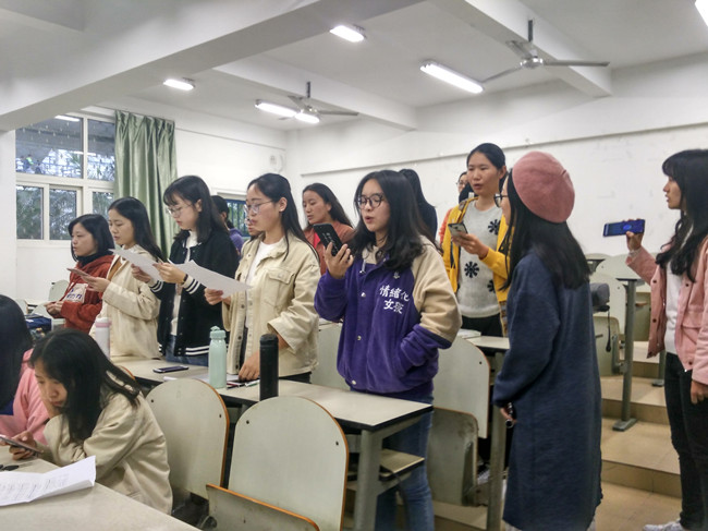 学院全体本科生、研究生踊跃参与到合唱中来,院合唱团骨干成员到各专业班级进行耐心细致地指导,使同学们在音调、情感等演唱技巧得到很大提升。“我们希望借校歌大家唱的机会,倡导全体同学唱好农大声音,重温农林大悠久灿烂的办学历史,继承和弘扬农林大的优良校风。”院学生合唱团团长叶珍珍同学如是说。