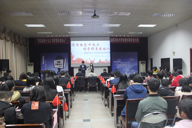 12月9日,计算机与信息学院“学深悟透十九大,博学修身农林人”创意时事评论大赛决赛在校大礼堂多功能厅举办。本次大赛邀请了福建博物院《福建文博》编辑肖振家、海峡摄影时报摄影记者兼编辑黄玮、我校旗山校区团学办公室副主任方万春、林学院辅导员马家峰、马克思主义学院研究生黄凡作为大赛评委,计算机与信息学院团委书记王晓、辅导员以及来自各学院学生代表150多人观看了比赛。