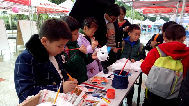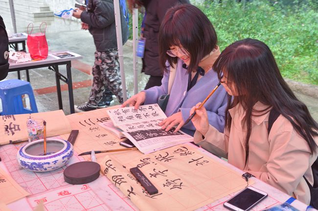 活动现场分为展览区、投票区与活动区三个部分。其中展览区展出一些前辈、教师以及学生的书法美术作品,书画作品表达了对党的忠诚之心和人民的热爱之情,体现了师生学习新思想、奋斗新时代的豪迈情怀。在活动区,同学们可以参与手绘白面具、猜灯谜等趣味小游戏,过关即可领取精美小礼品,从而吸引更多同学了解书画。在投票区,同学可以为自己喜欢的作品投票,从书画作品中感受艺术,提高审美情趣。