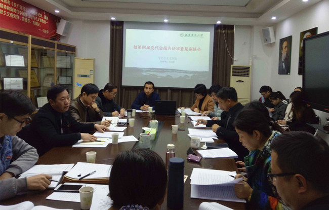 12月12日上午,校第四届党代会报告征求意见座谈会于马克思主义学院明德楼601会议室举行,校党委副书记曾华平、马克思主义学院师生代表与学校相关处室代表参会。