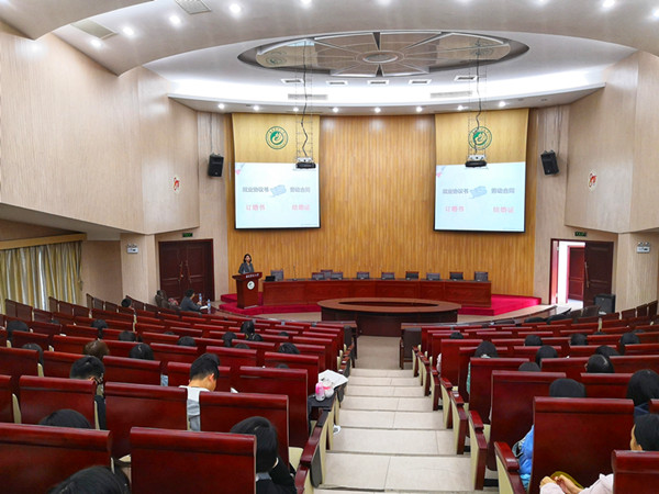 12月11号上午,管理学院(旅游学院)2019届毕业生就业创业动员大会在博学报告厅举行。院党委副书记王小榕、中国海峡市场驻校指导老师张阳阳出席,2019届毕业生辅导员主持会议,2019届全体应届毕业生到场参会。