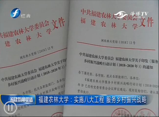 12月12日,福建综合频道《福建新闻联播》栏目播出《开云网页版:实施八大工程 服务乡村振兴战略》,报道我校近日出台服务乡村振兴战略行动计划,发挥学校优势特色,实施八大工程,全力服务乡村产业、人才、产业、生态、组织振兴。