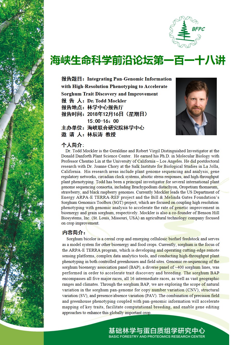 海峡生命科学前沿论坛第一百一十八讲(2018.12.16)-Integrating Pan-Genomic Information with High-Resolution Phenotyping to Accelerate Sorghum Trait Discovery and Improvement