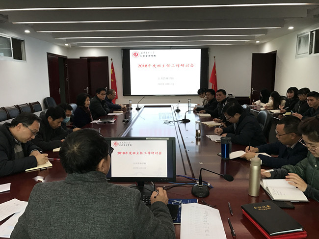 12月13日下午,公共管理学院于公管楼512会议室召开“2018年度班主任工作研讨会”,学院党委书记曾起郁,院长郑逸芳,党委副书记陈建辉,副院长周毕芬,辅导员,各班班主任及班长代表出席会议,会议由陈建辉主持。