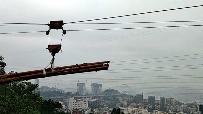 与会人员在听取了中建鑫宏鼎环境集团有限公司总工黄军的项目汇报后,赴狐尾山和仙岳山施工现场勘查索道架设及载重试运行工况,对大中小型索道网的总体布局、安装架设质量与吊装运输作业等进行了实地考察。