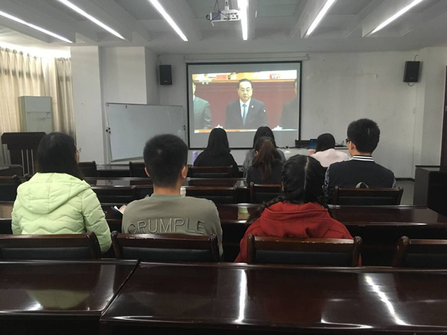 师生分别在会议室、教室或者宿舍集中收看庆祝大会盛况,深入了解改革开放40周年给中国带来的翻天覆地的变化。大家纷纷表示,庆祝大会振奋人心,倍感鼓舞,一定要好好珍惜改革开放的巨大成果,进一步深入学习贯彻习近平新时代中国特色社会主义思想,始终坚定地支持改革开放、不断加强学习,努力提升自身素质,为学校“双一流”建设而努力,为实现中华民族伟大复兴的“中国梦”做贡献。