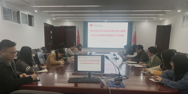 12月21日,公共管理学院于公管楼512召开学习习近平总书记在改革开放40周年大会上的重要讲话暨期末学生工作会议,学院党委副书记陈建辉、辅导员李吉及团学主要学生干部参加本次会议。