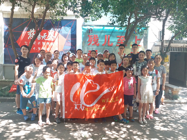 实践队员与长沙市阳光特殊儿童服务中心儿童合影