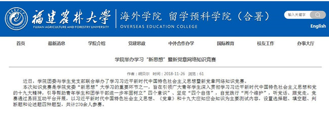 三是坚持思想引领与主题活动相结合。开展“看新福州 寻新变化”主题党日活动、“践行新思想 拥抱新时代”主题团日活动,举办学习“新思想”暨党章网络知识竞赛,“学习新思想 争当新青年”主题征文比赛,举办 “我看改革开放四十周年”英语演讲赛等。