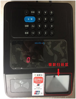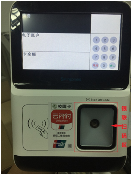 在食堂消费时,打开云闪付APP或银行APP,点击“收付款”,将弹出的银联二维码对准POS机的银联扫码区(见图-4)进行扫码,即可完成支付。