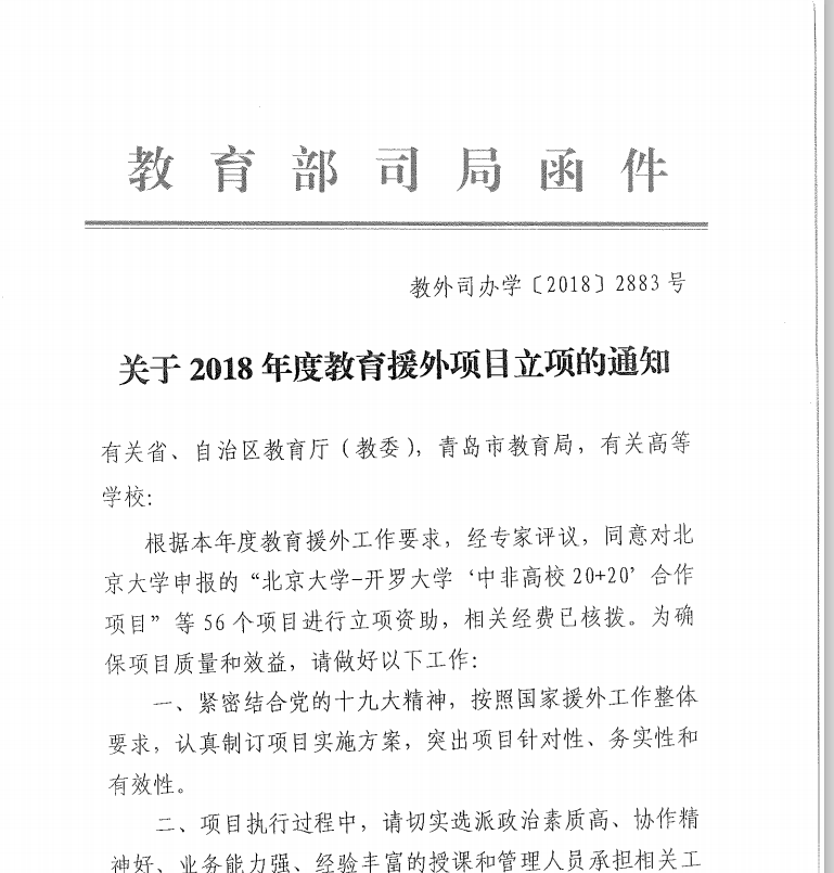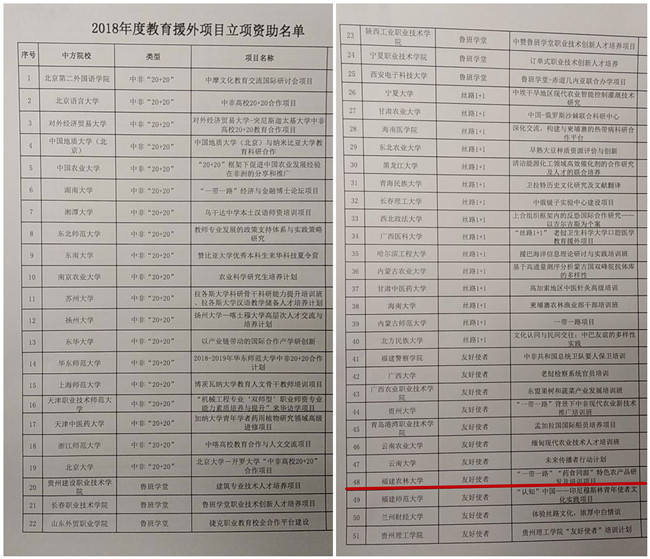 教育部国际合作与交流司日前下发通知,公布了2018年度教育援外立项情况。我校“一带一路”“药食同源”特色农产品研发及培训项目获得教育部批准,被列为教育援外友好使者项目,成为教育部资助的2018年度56个教育援外项目之一。